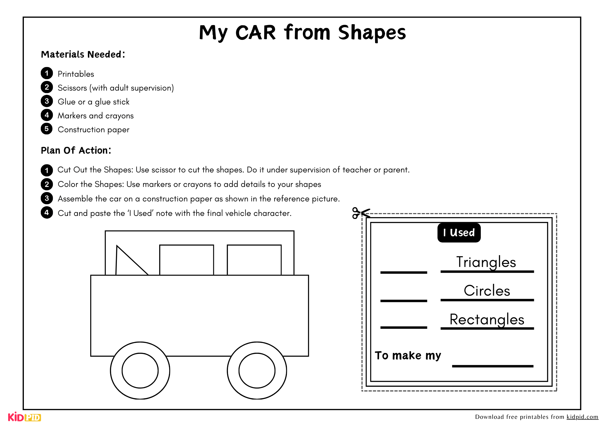 2. Cut Carefully: Help your child carefully cut out the rectangle, circles, and other shapes along the solid lines.